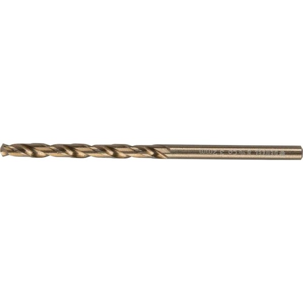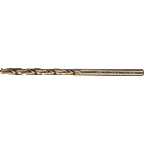 Кобальтовое сверло по металлу Denzel 71408 диаметром 3,2 мм, из стали HSS Co-8%, позволяет получать отверстия высокой точности в нержавеющей стали, цветных металлах, легированных и нелегированных сталях с пределом прочности до 1100 Н/мм2, а также в жестком пластике. Угол заточки 135° обеспечивает повышенную точность и чистоту сверления.ПреимуществаПовышенная стойкость к износу и перегреву — сверло изготовлено из наиболее качественной быстрорежущей стали М42 с 8%-ным содержанием кобальта.Точная и быстрая работа — шлифованный профиль обеспечивает эффективный отвод металлической стружки и позволяет добиться гладкого отверстия.Легкое засверливание — подточка поперечной кромки Split point повышает устойчивость сверла к нагрузкам и позволяет приступать к работе без предварительной разметки поверхности (накернивания).Универсальность — цилиндрический хвостовик совместим со всеми типами патронов.
