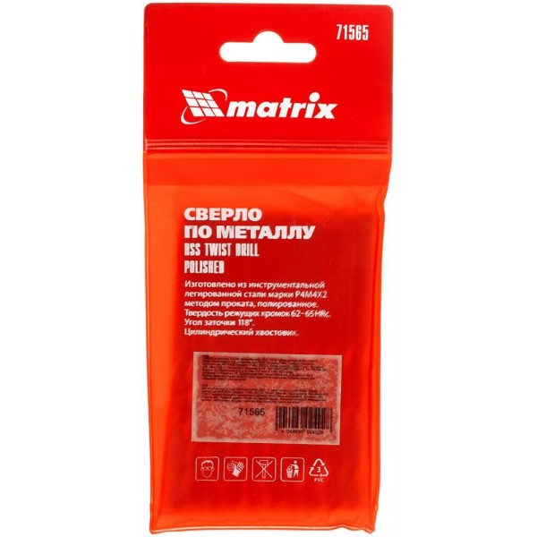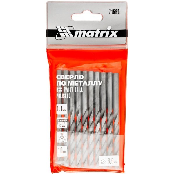 MATRIX Сверло по металлу, 6.5 мм, полированное, HSS, 10 шт, цилиндрический хвостовик 71565