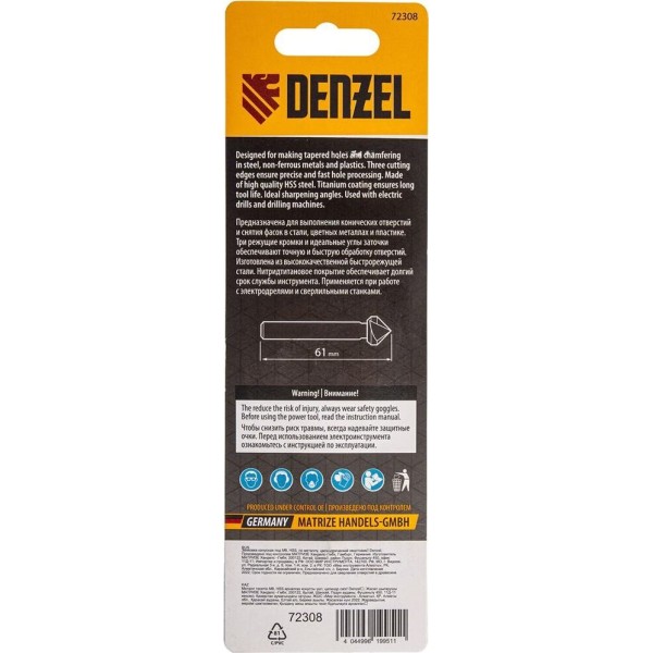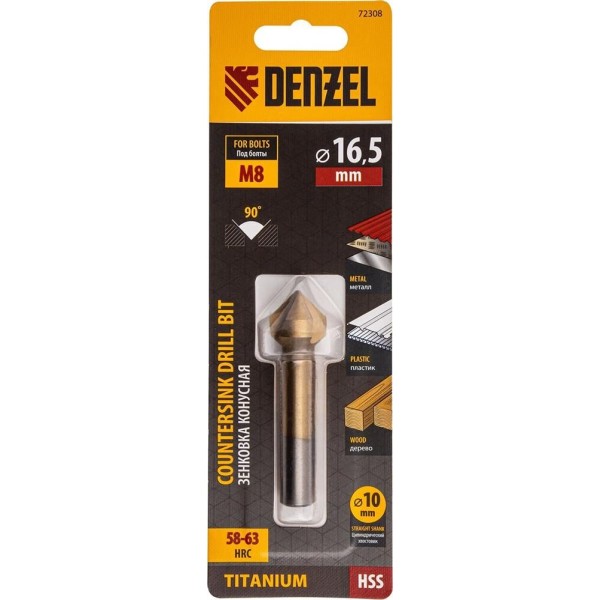 DENZEL Зенковка конусная под М8, HSS, по металлу, 6-гранный хвостовик 72308