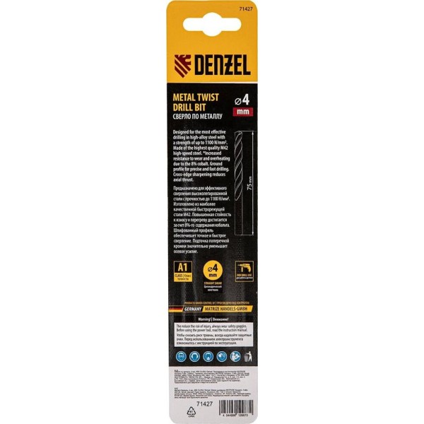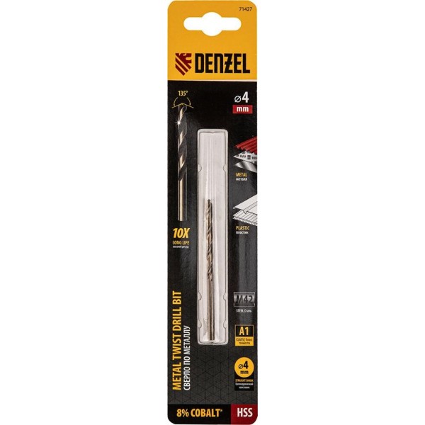 DENZEL Сверло по металлу, 4 мм, HSS Co-8%// 71427