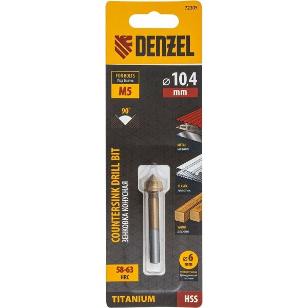 DENZEL Зенковка конусная под М5, HSS, по металлу, 6-гранный хвостовик 72305
