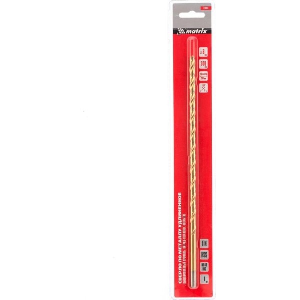 MATRIX Сверло спиральное по металлу 8 x 300 мм, HSS, нитридтитановое покрытие 714308