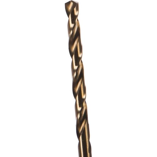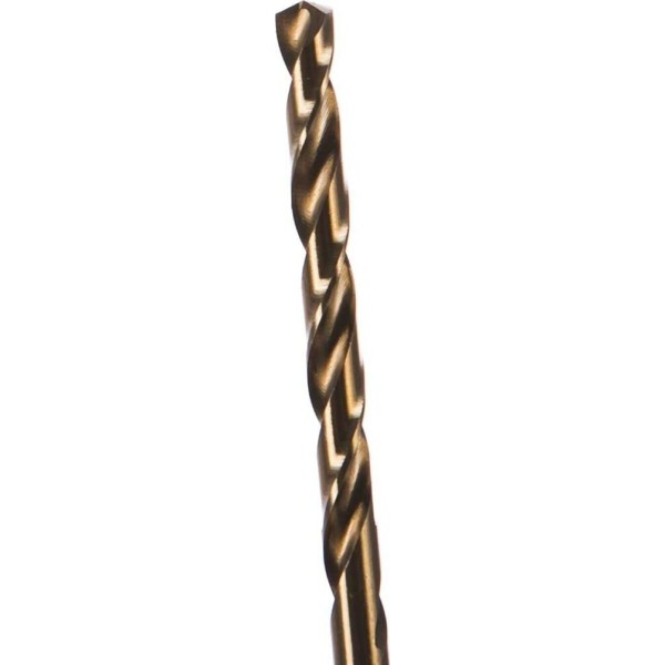 Сверло Matrix 71423 диаметром 4,8 мм, из стали HSS Co-5%, имеет угол заточки 135 градусов, оптимальный для сверления легированных и цветных металлов. Подходит для профессионального использования на строительной площадке.ПреимуществаСтойкость к износу и перегреву — сверло выполнено методом вышлифовывания профиля из качественной быстрорежущей стали с 5% содержанием кобальта и имеют увеличенную сердцевину.Легкое засверливание — благодаря подточенной поперечной кромке предварительное накернивание (создание лунки) не требуется.Высокая скорость работы — поверхность сверла отполирована, что снижает трение и обеспечивает эффективный отвод стружки.Универсальность — цилиндрический хвостовик совместим со всеми типами патронов.