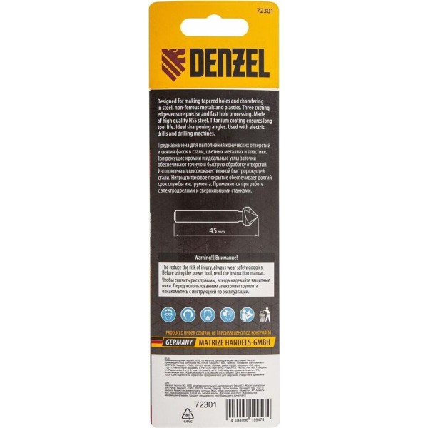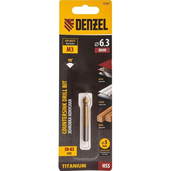 DENZEL Зенковка конусная под М3, HSS, по металлу, 6-гранный хвостовик 72301
