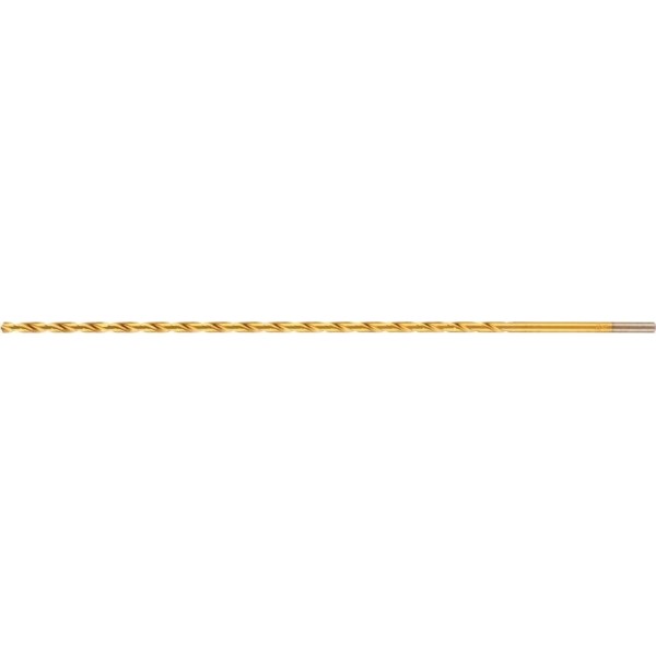 Спиральное сверло Matrix 714305 диаметром 5 мм, из стали HSS, с нитридтитановым покрытием и удлиненным профилем 300 мм, предназначено для получения глубоких отверстий в металле. Угол заточки 118° оптимален для работы с черными металлами, сталью, чугуном и твердой бронзой. Сверло испытывает уменьшенное осевое усилие во время работы, выдерживает интенсивные нагрузки и подходит для профессионального использования.ПреимуществаНадежность — сверло изготовлено из универсальной быстрорежущей стали HSS, нитридтитановое покрытие защищает от коррозии и обеспечивает стойкость к перегреву.Высокая точность исполнения — профиль сверла вышлифован с соблюдением геометрии и углов заточки режущей части.Комфортная работа — благодаря подточенной поперечной кромке не требуется предварительное создание лунки (накернивание), улучшенный отвод шлама облегчает сверление.Универсальность — цилиндрический хвостовик совместим с большинством типов патронов.