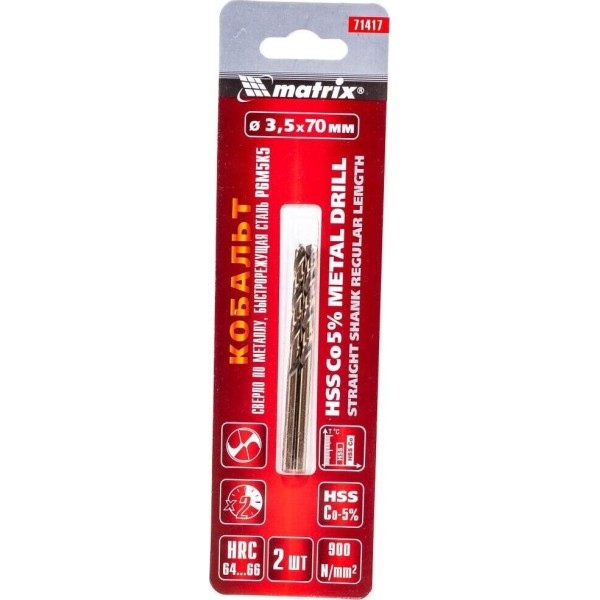 MATRIX Сверло по металлу, 3.5 мм, HSS Co-5%, 2 шт 71417