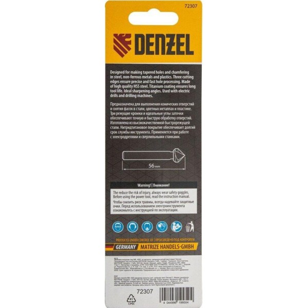 DENZEL Зенковка конусная под М6, HSS, по металлу, 6-гранный хвостовик 72307