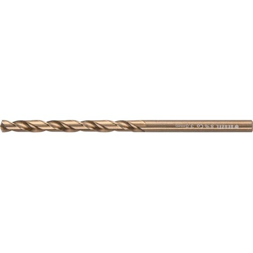 Кобальтовое сверло по металлу Denzel 71424 диаметром 3,8 мм, из стали HSS Co-8%, позволяет получать отверстия высокой точности в нержавеющей стали, цветных металлах, легированных и нелегированных сталях с пределом прочности до 1100 Н/мм2, а также в жестком пластике. Угол заточки 135° обеспечивает повышенную точность и чистоту сверления.ПреимуществаПовышенная стойкость к износу и перегреву — сверло изготовлено из наиболее качественной быстрорежущей стали М42 с 8%-ным содержанием кобальта.Точная и быстрая работа — шлифованный профиль обеспечивает эффективный отвод металлической стружки и позволяет добиться гладкого отверстия.Легкое засверливание — подточка поперечной кромки Split point повышает устойчивость сверла к нагрузкам и позволяет приступать к работе без предварительной разметки поверхности (накернивания).Универсальность — цилиндрический хвостовик совместим со всеми типами патронов.
