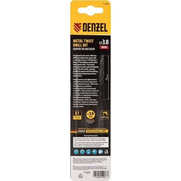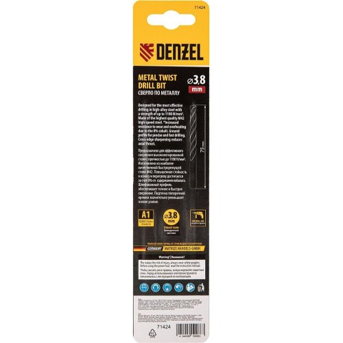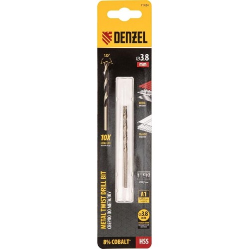 DENZEL Сверло по металлу, 3,8 мм, HSS Co-8%// 71424