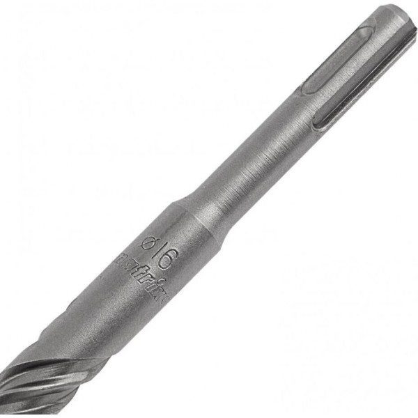 Бур по бетону Matrix 70681 размером 16 х 300 мм используется с перфораторами типа SDS Plus. Используется для получения отверстий в особо твердых поверхностях, таких как бетон, арматура, кирпич, искусственный и натуральный камень. Благодаря твердосплавной пластине с 4 резцами бур успешно справляется с большими объемами работ.ПреимуществаВысокий ресурс — крестовая режущая пластина из сверхтвердого сплава карбида вольфрама 80–90 HRC долговечна, эффективно сверлит камень и не ломается при попадании в арматуру.Износостойкость — спиральная часть бура изготовлена из легированной стали 40Х и термообработана, благодаря чему выдерживает высокие динамические нагрузками.Качественное удаление шлама — четырехспиральная рабочая часть обеспечивает более эффективный отвод продуктов сверления, тем самым предотвращая перегрев бура.