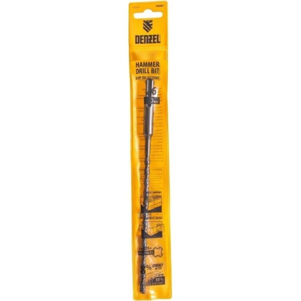 Бур по бетону Denzel арт. 705007 с хвостовиком SDS PLUS и двойной спиралью предназначен для сверления отверстий в бетоне, кирпиче и камне. Он используется в качестве оснастки для перфораторов с патроном SDS Plus. Бур оптимален для проведения строительных, ремонтных, монтажных работ.ПреимуществаВысокий ресурс — режущая твердосплавная пластина из стали ВК8 твердостью 80-90 HRC с W-образной заточкой способна сверлить отверстия до 30% быстрее, в том числе при работе с камнем.Прочность и износостойкость — рабочая часть из легированной стали 40Х выдерживает интенсивные и длительные ударные нагрузки, а также делает бур самым высокопроизводительным среди аналогов средней цены.Двойная спираль и канавка с дополнительным желобом — за счет более эффективного отвода шлама рабочая часть не перегревается, что позволяет продлить срок службы бура.Удобная упаковка с европодвесом — оснастку можно разместить на стенде.