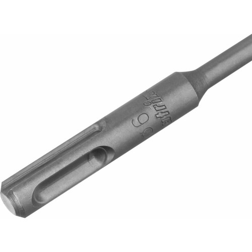 Бур по бетону Matrix 71036, 6 х 300 мм, SDS PLUS предназначен для установки на перфоратор и позволяет получать отверстия диаметром 6 мм в бетоне, камне и кирпиче. Он эффективно решает поставленные задачи благодаря режущей пластине из высокотвердого сплава карбида вольфрама ВК8 твердостью 80-90 HRC.ПреимуществаХвостовик SDS Plus позволяет быстро устанавливать бур и надежно его фиксирует.Рабочая часть изготовлена из легированной стали 40Х с добавлением хрома, поэтому инструмент устойчив к высоким нагрузкам, возникающим при ударном сверлении.На режущей пластине имеется центрирующая головка — во время работы бур не уводит в сторону, что повышает качество сверления и продлевает ресурс работы инструмента.Увеличенная площадь сечения корпуса способствует снижению вибраций при сверлении и предотвращает поломку бура.Двойная усиленная спираль удаляет большое количество шлама, в результате снижается нагрузка на бур и возрастает его производительность.