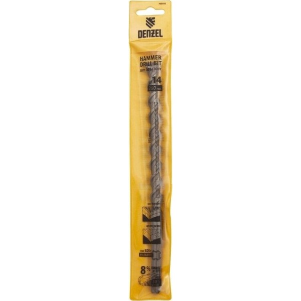 Бур по бетону Denzel арт. 705032 с хвостовиком SDS PLUS и двойной спиралью предназначен для сверления отверстий в бетоне, кирпиче и камне. Он используется в качестве оснастки для перфораторов с патроном SDS Plus. Бур оптимален для проведения строительных, ремонтных, монтажных работ.ПреимуществаВысокий ресурс — режущая твердосплавная пластина из стали ВК8 твердостью 80-90 HRC с W-образной заточкой способна сверлить отверстия до 30% быстрее, в том числе при работе с камнем.Прочность и износостойкость — рабочая часть из легированной стали 40Х выдерживает интенсивные и длительные ударные нагрузки, а также делает бур самым высокопроизводительным среди аналогов средней цены.Двойная спираль и канавка с дополнительным желобом — за счет более эффективного отвода шлама рабочая часть не перегревается, что позволяет продлить срок службы бура.Удобная упаковка с европодвесом — оснастку можно разместить на стенде.