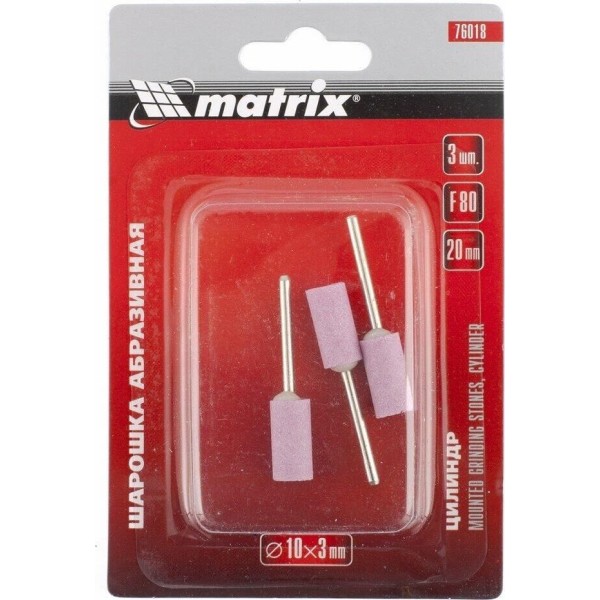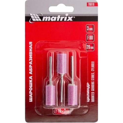 MATRIX Шарошка абразивная, цилиндр, 10 x 20 x 3 мм, F80, 3 шт 76018
