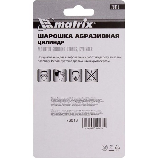 Шарошка абразивная Matrix 76018, 10 х 20 мм, с хвостовиком диаметром 3 мм, 3шт., имеет форму цилиндра и покрыта среднезернистым абразивом F80. Предназначена для очистки прямолинейных поверхностей, расширения отверстий, снятия фасок и удаления заусенцев. Она используется в качестве оснастки на дрелях, шуруповертах, а также ПШМ при выполнении отделочных и декоративных работ.ПреимуществаАбразив из оксида алюминия универсален по своему применению, поэтому подходит для обработки различных поверхностей: металла, пластика, древесины, минеральных материалов.Среднезернистый абразив F80 позволяет осуществить чистовую шлифовку заготовок.Комплект состоит из 3 шарошек, которых хватит на большой объем работ.