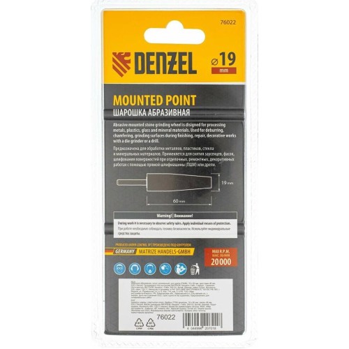 Шарошка абразивная Denzel 76022 с рабочей частью в форме удлиненного конуса 19 х 60 мм, с хвостовиком диаметром 6 мм, — оснастка для дрели, шуруповерта или прямошлифовальной машины (ПШМ). С ее помощью можно удалить заусенцы, снять фаски, очистить поверхность от ржавчины. Шарошка удобна для обработки отверстий и труднодоступных мест. Пригодится в ремонтной мастерской, автосервисе, будет полезна при выполнении отделочных работ.ПреимуществаДолговечность — абразив из карбида кремния (63С) обладает в 2 раза большим ресурсом, чем оксид алюминия.Универсальность — шарошка подходит для обработки металла, пластика, различных сплавов, стекла, керамической плитки, натурального и искусственного камня.Простое использование — цилиндрический хвостовик подходит для стандартных патронов дрелей и шуруповертов, а также для ПШМ с цанговым зажимом.