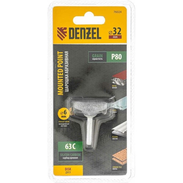 DENZEL Шарошка абразивная, диск, 32 x 12 мм, для дрели, хвостовик d6 мм, 63С 76024