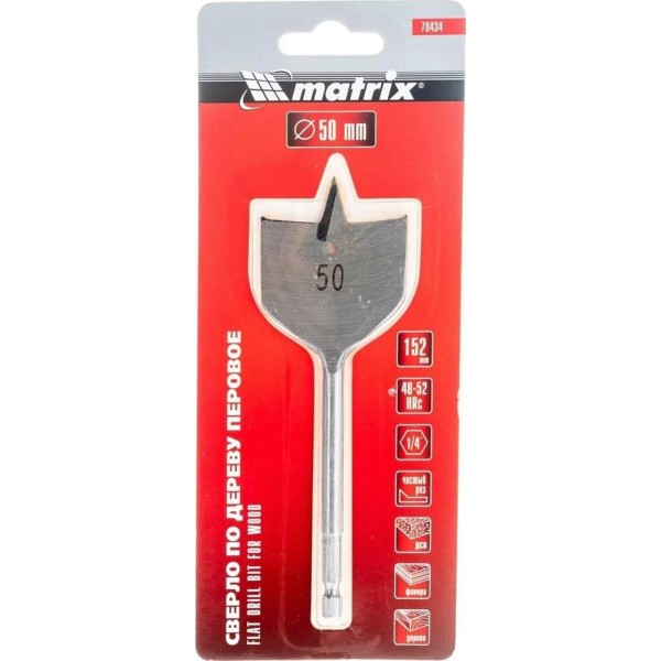 MATRIX Сверло по дереву перовое, 50 мм, шестигранный хвостовик 70434