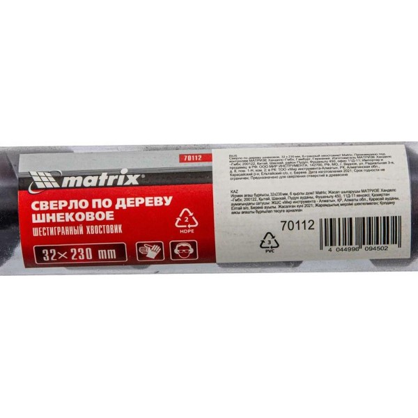 MATRIX Сверло по дереву шнековое, 32 х 230 мм, шестигранный хвостовик 70112