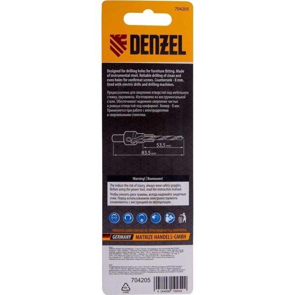DENZEL Сверло-зенкер под конфирмат, 5 мм // 704205