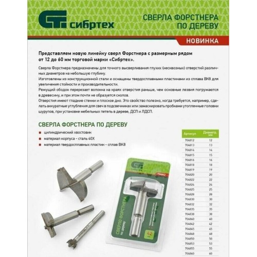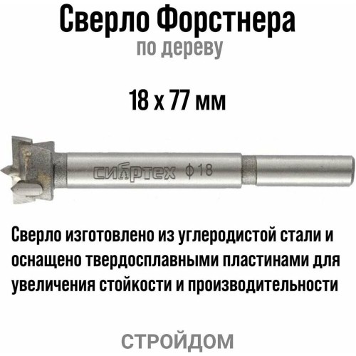СИБРТЕХ Сверло Форстнера по дереву, 18 мм, цилиндрический хвостовик 704818
