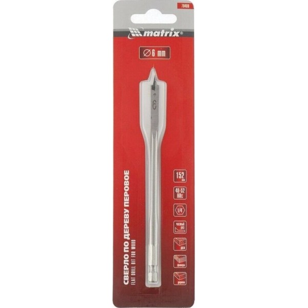 MATRIX Сверло по дереву перовое, 40 мм, шестигранный хвостовик 70432