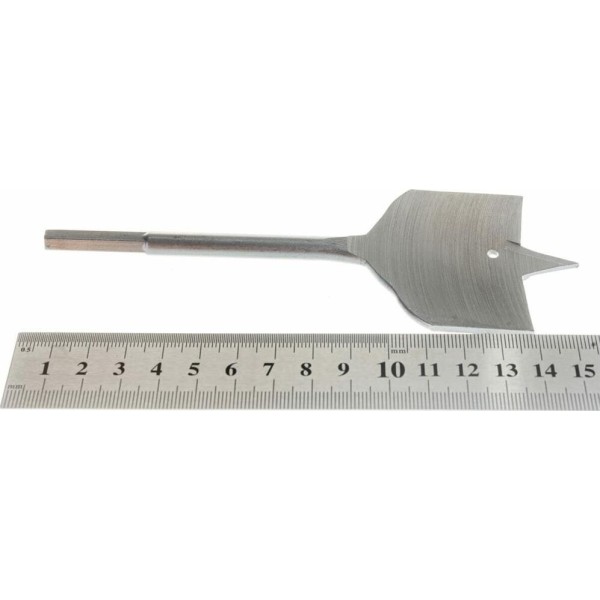 Перовое сверло по дереву Сибртех 70399 предназначено для получения в древесине глубоких отверстий диаметром 55 мм. Имеет центральный шип, обеспечивающий точное позиционирование инструмента и облегчающий засверливание. Позволяет просверливать сквозные, а при отсутствии строгих требований к параметрам — и глухие отверстия. Может быть установлено в патрон ручной или электрической дрели, а также сверлильного станка. Сверло используется в столярном деле.ПреимуществаСверло из инструментальной стали устойчиво к деформации.Закаленная рабочая часть твердостью 42-50 HRC обеспечивает сверлу высокий ресурс.Шестигранный хвостовик сверла не проворачивается в патроне, что сокращает время сверления.