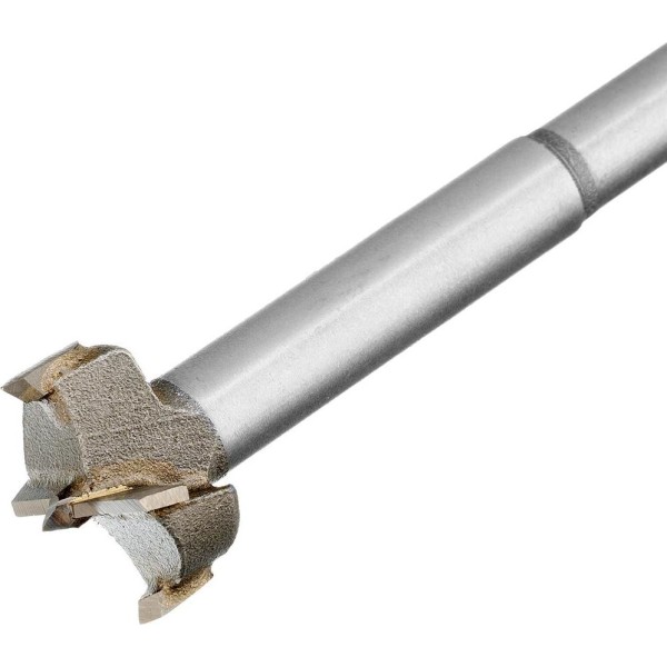 Сверло Форстнера по дереву Сибртех 704820 с цилиндрическим хвостовиком, используется для получения глухих отверстий диаметром 20 мм в древесине, ДСП, ДВП и других материалах. Благодаря продуманной конструкции инструмента стенки и дно отверстий получаются ровными и гладкими. Сверло применяют для производства мебели, а также отделочных работ.ПреимуществаСверло изготовлено из стали 45, поэтому устойчиво к механическим нагрузкам.Благодаря твердосплавным пластинам из сплава ВК8 твердостью 86-92 HRC инструмент характеризуется высокой производительностью и продолжительным ресурсом работоспособности.Центрирующее острие удерживает сверло на заданной оси, что облегчает засверливание и позволяет получить ровное отверстие.