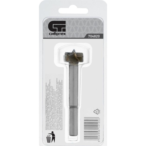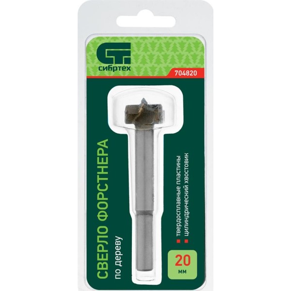 СИБРТЕХ Сверло Форстнера по дереву, 20 мм, цилиндрический хвостовик 704820