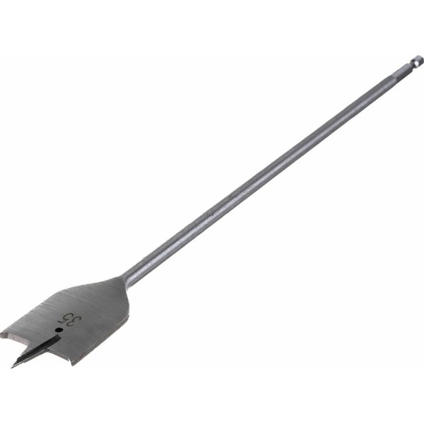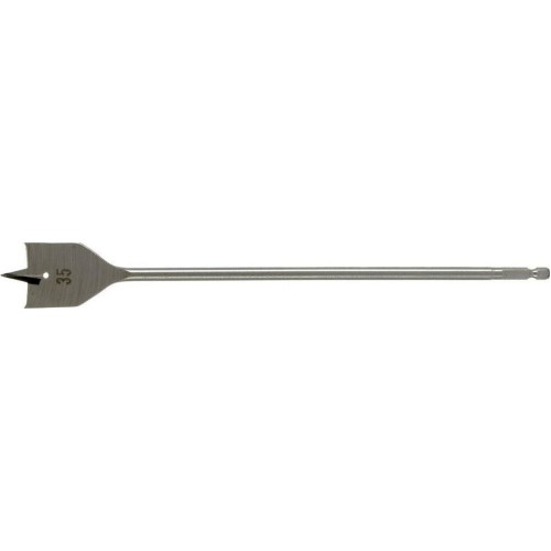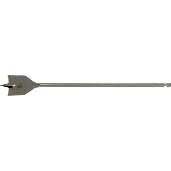 Удлиненное перовое сверло по дереву Matrix 704035 диаметром 35 мм, с 6-гранным хвостовиком, за счет длины 300 мм позволяет получать глубокие отверстия без необходимости использования удлинителя. Эффективно сверлит древесину любой твердости.ПреимуществаНадежность и долговечность — сверло изготовлено из стали 45, а режущие кромки закалены до твердости 48-52 HRC.Аккуратная работа — специальные подрезатели позволяют получать отверстия с ровной поверхностью.Центрирующее острие — нет необходимости в предварительном засверливании.Надежная фиксация — шестигранный хвостовик не проворачивается в патроне.