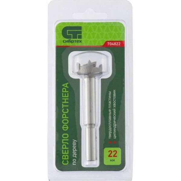 СИБРТЕХ Сверло Форстнера по дереву, 22 мм, цилиндрический хвостовик 704822