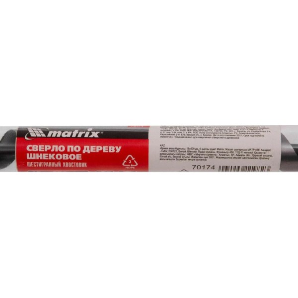 MATRIX Сверло по дереву шнековое, 16 х 600 мм, шестигранный хвостовик 70174