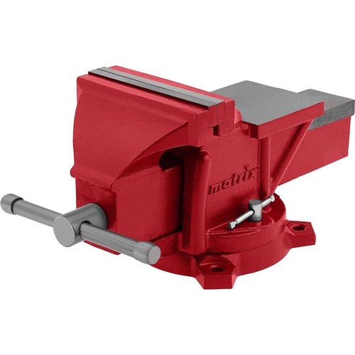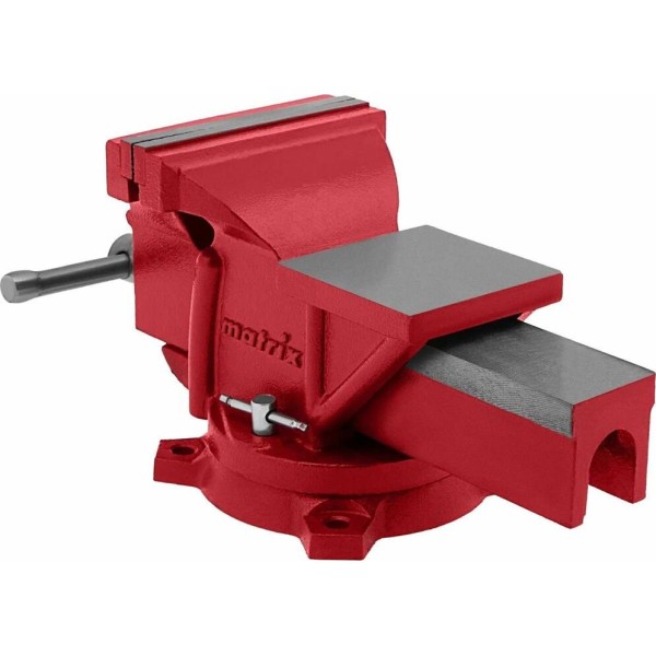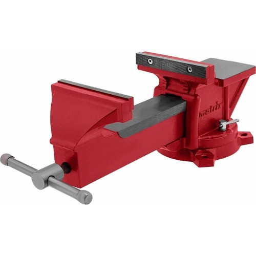 Поворотные слесарные тиски Matrix 18602 с наковальней и губками шириной 150 мм имеют рабочий ход 160 мм и предназначены для захвата и фиксации различных деталей. Поворотный механизм с прижимными винтами позволяет вращать тиски на 360° и фиксировать их в выбранном положении для удобной обработки заготовок с разных сторон. Инструмент используется для шлифовки, сверления и проведения других работ. Будет полезен в мастерской и гараже.ПреимуществаПрочность — корпус выполнен из чугуна, прижимные губки — из стали 45 твердостью 45-53 HRC.Коррозионная стойкость — тиски покрыты защитной порошковой эмалью.Надежная фиксация — губки с рельефной поверхностью не скользят по поверхности заготовки.Дополнительные возможности — на корпусе имеется наковальня для выполнения небольших ударных работ.Защита поверхности заготовок — на губки можно установить накладки из более мягкого материала (не входят в комплект поставки).Простой монтаж — в основании имеются отверстия для крепления к верстаку.