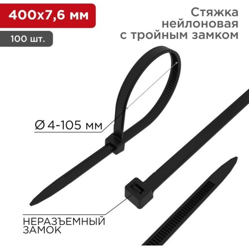 REXANT Стяжка нейлоновая Профессиональная 400x7,6мм, черная (100 шт/уп)