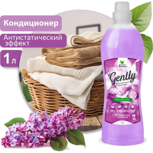 CLEAN&GREEN Кондиционер для белья Gently "Бархатный восторг" (концентрат, сиреневый) 1000 мл. Clean&Green CG8282
