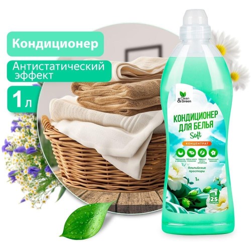CLEAN&GREEN Кондиционер для белья Soft "Альпийские просторы" (концентрат, зелёный) 1 л. Clean&Green CG8361