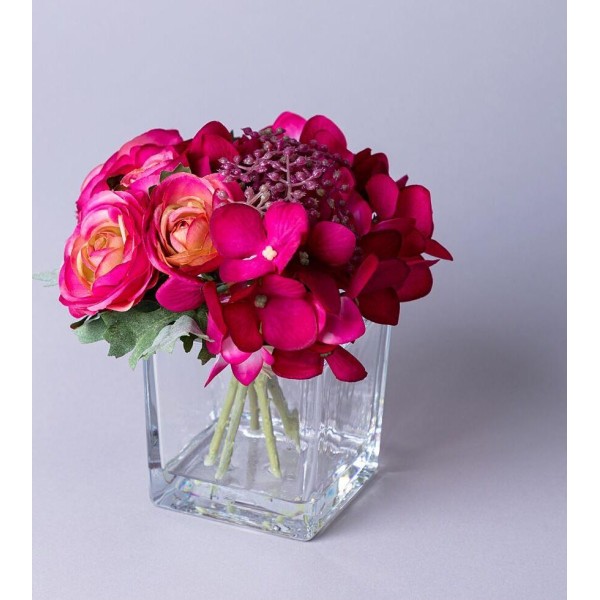 LEFARD БУКЕТ ИСКУССТВЕННЫХ ЦВЕТОВ В КВАДРАТНОЙ ВАЗЕ ВЫСОТА= 16СМ (МАЛ=8ШТ./КОР=24ШТ.) 287-550