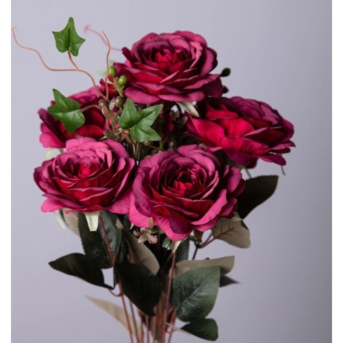 LEFARD БУКЕТ ИЗ ИСКУССТВЕННЫХ РОЗ ДЛИНА=50СМ , ЦВЕТ ВИННЫЙ МАЛ.УП.=12ШТ 535-390