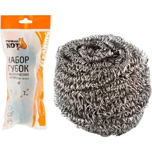 Набор губок металлических РЫЖИЙ КОТ Набор губок металлических SM-02/3, Спираль, вес 20 гр., пакет 3 шт. (001741)