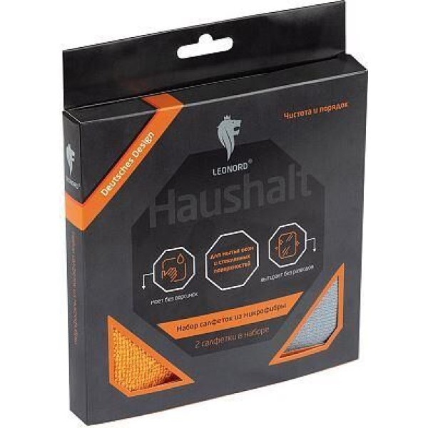 Набор салфеток из микрофибры LEONORD Набор салфеток из микрофибры 2шт для мытья окон (104909)