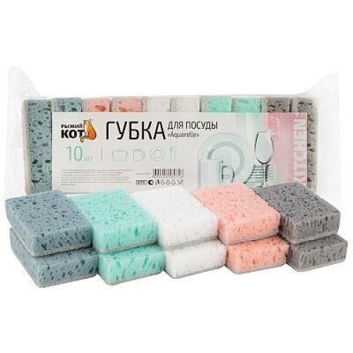 РЫЖИЙ КОТ Губка д/посуды Aquarelle (10шт) (93*65*27мм) (310577)