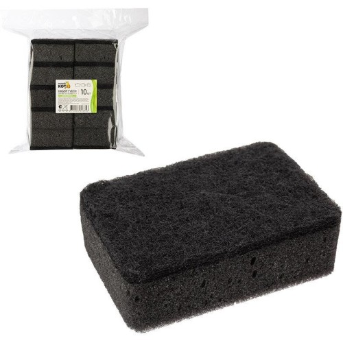 РЫЖИЙ КОТ Набор губок для мытья посуды двухслойных прямоугольных KS-08, 10 шт (черный) (107569)