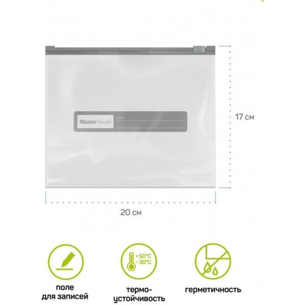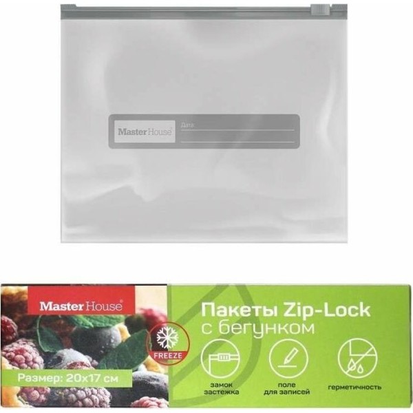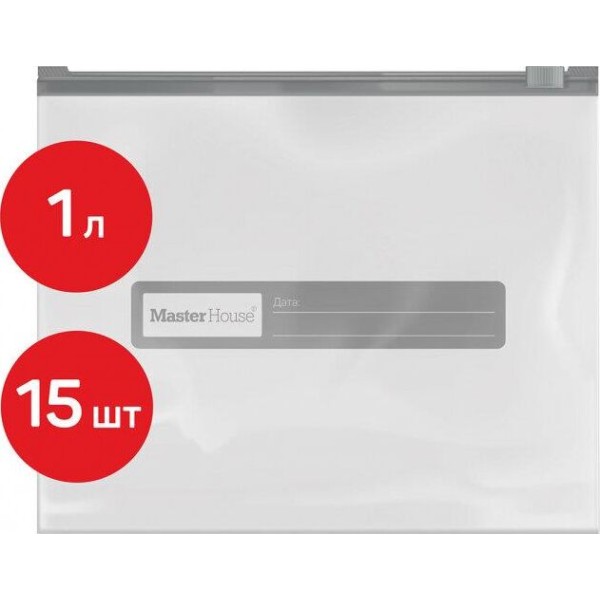 Набор пакетов MASTER HOUSE Zip-Lock с бегунком,20х17 см, 1 литр, 15 шт 75166