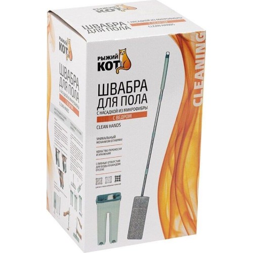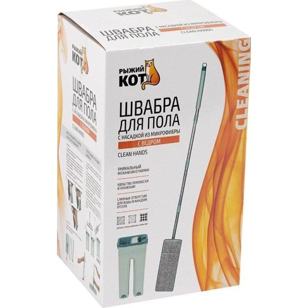 РЫЖИЙ КОТ Швабра для пола с насадкой из микрофибры и ведром Clean hands beige