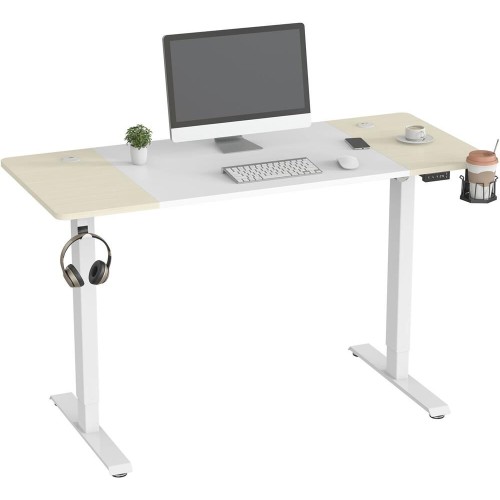 Стол компьютерный CACTUS Стол для компьютера подъёмный столешница МДФ белый дуб молочный каркас белый (CS-EDL-WWD)