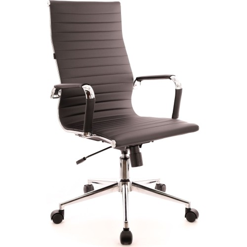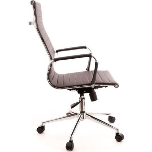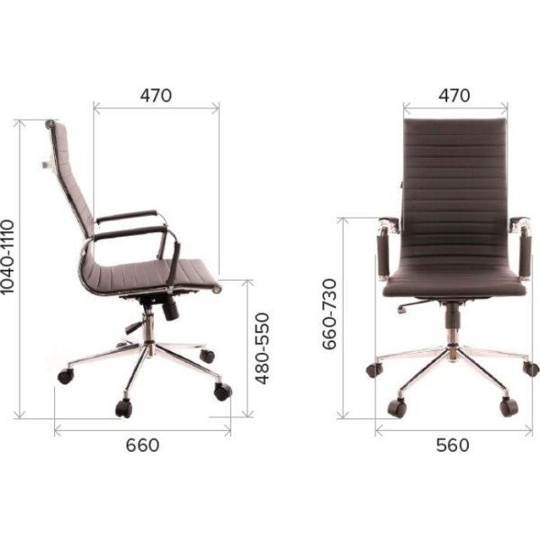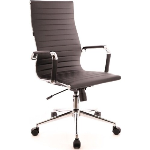 Подлокотники: Металлические с накладками из экокожи. Подголовник: Нет. Поясничная поддержка: Да. Механизм качания: ТопГан - механизм качания с возможностью фиксации кресла в рабочем положении. Крестовина: Хромированная сталь O 660 мм. Газ патрон: 3 категории (Germany DIN 4550). Ролики: Стандарт BIFMA 5,1 (США). Ролик O 50мм. Для паркета. Каркас: Монолитный. Материал обивки: Экокожа. Материал набивки: Отсутствует. Тип кресла: Для руководителя. Цвет: Черный. Допустимая нагрузка 120кг.