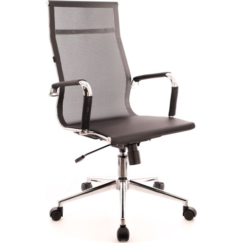 Кресло руководителя разработано для тех, кто ценит современный дизайн и практичность в рабочем пространстве. Металлические подлокотники, украшенные накладками из акриловой сетки, обеспечивают превосходный комфорт и поддержку в течение всего рабочего дня. Механизм «ТопГан» для идеальной фиксации: Забудьте о неудобствах. Механизм качания позволяет фиксировать кресло в нескольких положениях для оптимального комфорта. Сделанная из хромированной стали, крестовина не только выглядит элегантно, но и гарантирует прочность и долговечность, выдерживая нагрузку до 120 кг. Стабильность и прочность гарантированы благодаря монолитному каркасу кресла. С диаметром штока 11 мм ролики идеально подходят для паркетных полов, сохраняя их в идеальном состоянии. Акриловая сетка в черном цвете не только подчеркивает ваш статус, но и обеспечивает вентиляцию. Рост до 170см, 170-185см, 185-200см