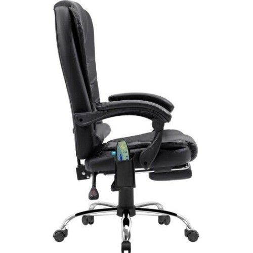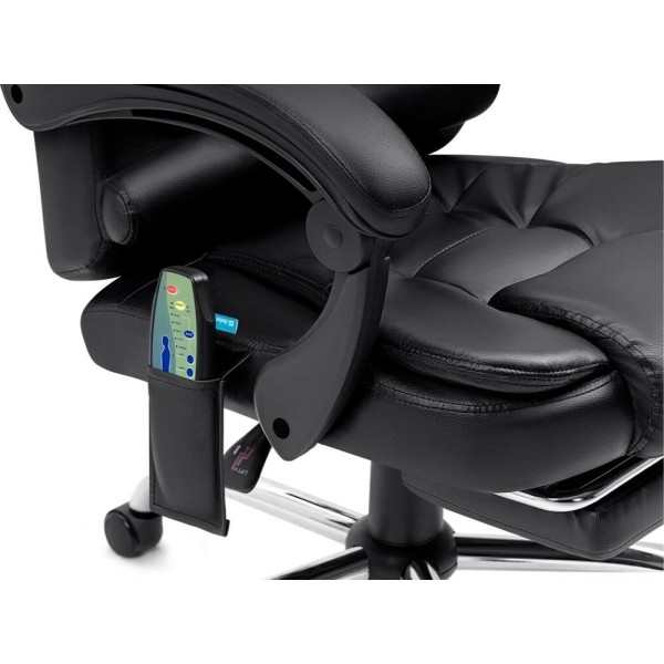 Компьютерное кресло с функцией вибромассажа - у данной модели 7 встроенных массажных головок. Высокий уровень комфорта обеспечивается за счет спинки, которая отклоняется до 135°, мягких подлокотников и подставки для ног. Выбирать тип массажа и регулировать его интенсивность можно с помощью пульта управления, которым комплектуется кресло.