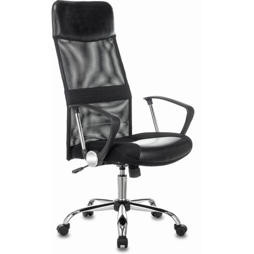 Кресло компьютерное БЮРОКРАТ Кресло руководителя CH-600SL черный эко.кожа/сетка крестов. металл хром