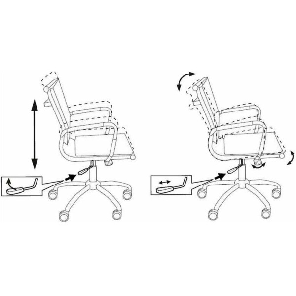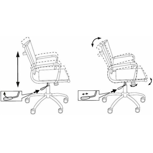 расположение центра тяжести при качании со смещенной осью; соотношение угла отклонения спинки и подъема сиденья 1:1 (не изменяется)